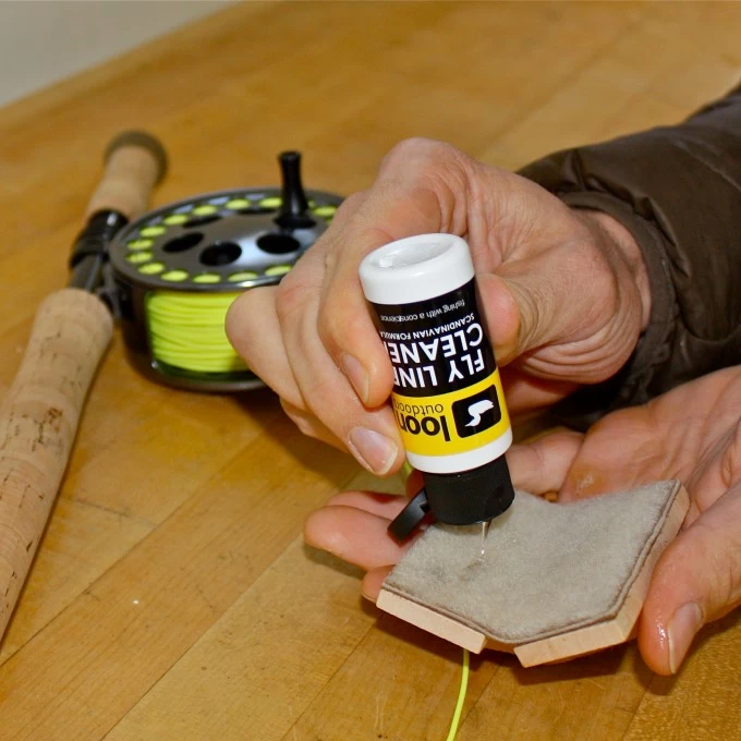 Designed for fly fishermen in Scandinavia, the Loon Scandinavian Fly Line Cleaner is the ultimate in fly line cleaning and dressing. Simply add a few drops of Loon Scandinavian Line Cleaner to Loonβs Line Cleaning Tool, apply to fly line and watch the casting distance increase. Not intended for sinking lines.