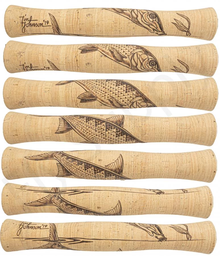 - Hand-burned Tim Johnson bonefish on the cork grip