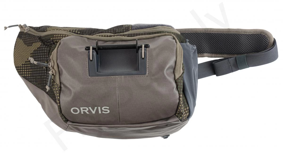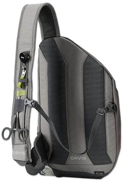 The best-selling Orvis fly-fishing Sling Pack has been updated and improved not only for durability, but with innovative new convenience features as well. The 100% recycled CORDURA® ECO; platform is designed to store, organize, and offer easy, intuitive accessibility while staying completely out of your way when fishing. New features include the Tippet Whippet recessed docking station with tippet bar included for instant, fixed, and fumble-free access for up to six spools. Main compartment has zippered security pocket with key fob and stretch mesh pockets for small sort storage. Front drop-down has zippered pocket with elastic mesh slip pockets. Lo-pro zinger/nipper pass-through, easy swing handle, and water bottle holder with retainer. Front strap “dashboard” offers multiple docking stations for forceps and small tools as well as sliding adjustment for sternum strap. Left shoulder design frees up casting arm and shoulder. Weight: 500g/1.1 lbs. Shell: 100% recycled CORDURA® ECO 600 denier polyester with strategic TPU coating. Liner: 100% recycled 200 denier polyester. Spot clean. Imported. Tippet and accessories not included.