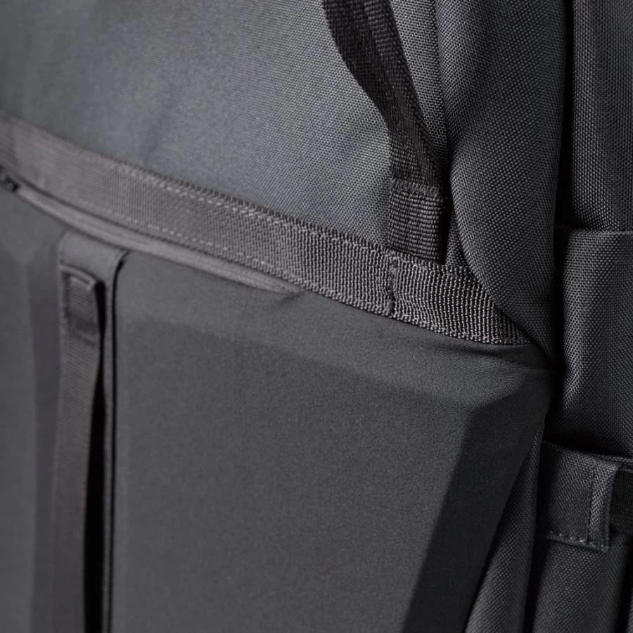 - Low-profile, hidden security pocket, organizational panel, and laptop sleeve