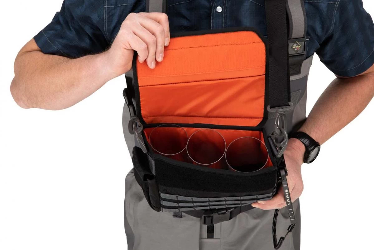 The savvy, on-body tackle storage system of the Simms Open Water Tactical Waist Pack Black keeps essential tools and gear ready for action, so your fly-fishing missions can continue without pause.