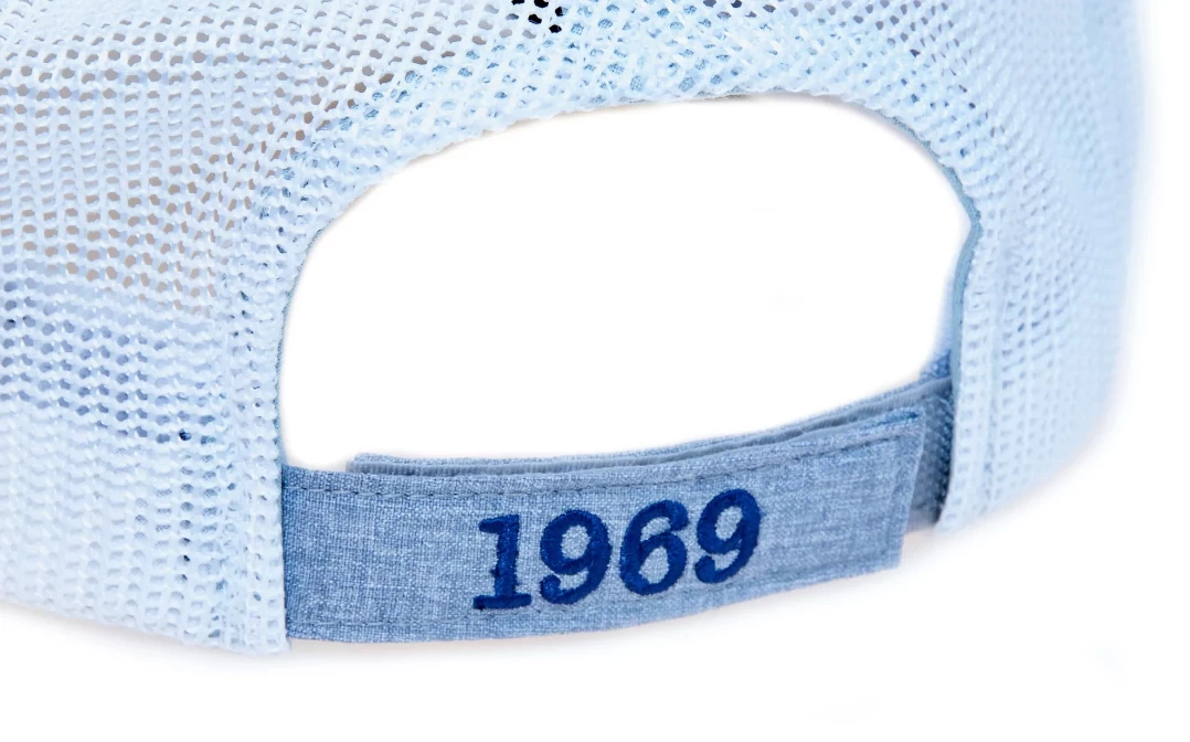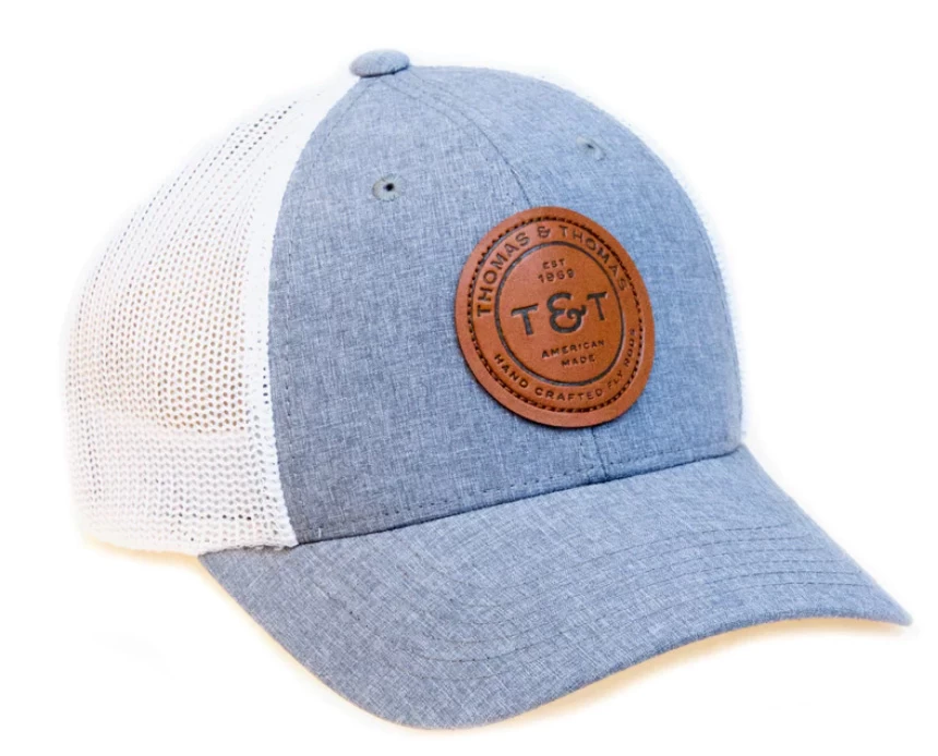 New Heather Gray Stretch-fit Trucker with synthetic leather logo badge.