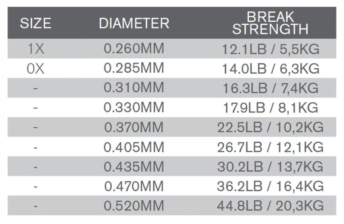 Size: 9 feet/2.75 meter, with a tippet of 33/00, 37/00 or 40.5/00.