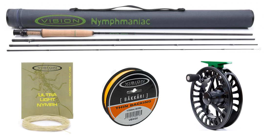 Take your profit on the extra advantage of the Vision Nymphmaniac Outfit. This set contains a fly-rod, fly-reel, fly-line and backing. The backing and fly-line have already been spooled onto the fly-reel, so the set is ready-to-use.