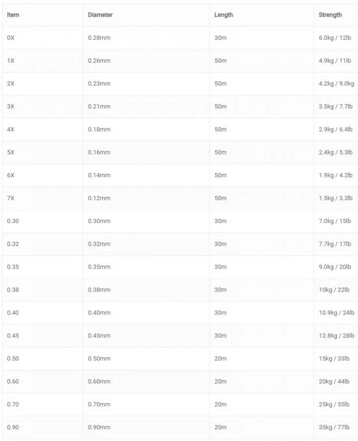 - Medium stiff fluorocarbon with exceptionally high knot and tensile strength
